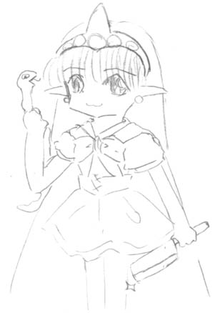 ロリちゃんバージョン! かなり微妙です。(自爆) なんとなく口元がお気に入りなんですが(笑) この後どうなるかはもちろんひみつ・・・ しかしいったい何考えて描いたんでしょうね?(激爆) |